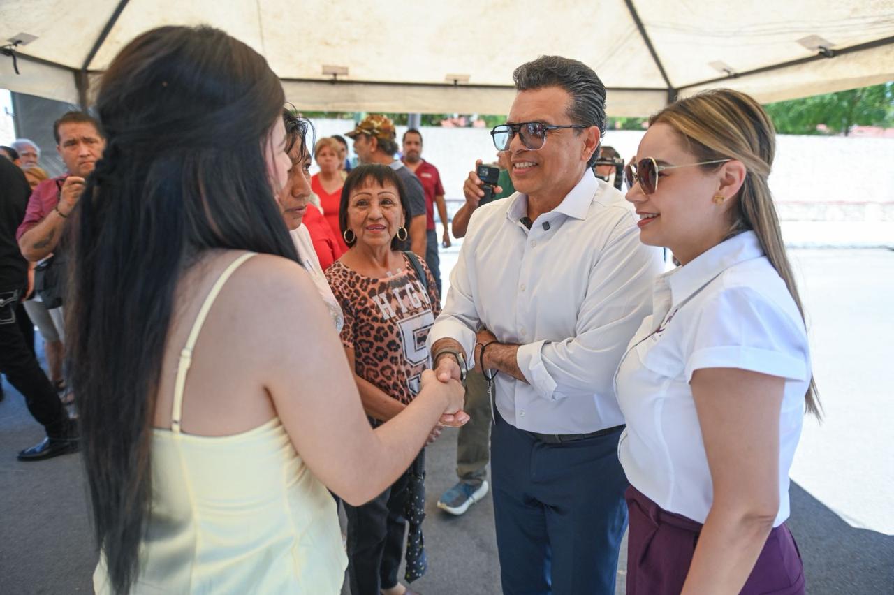 Cd. Victoria, 6 de agosto 2025.- El presidente municipal de Victoria Eduardo Gattás Báez selló compromiso con vecinos de las colonias Norberto Treviño Zapata y Viviendas Populares al inaugurar la rehabilitación asfáltica de la calle Chihuahua que abarca una superficie de 3, 493 metros cuadrados.